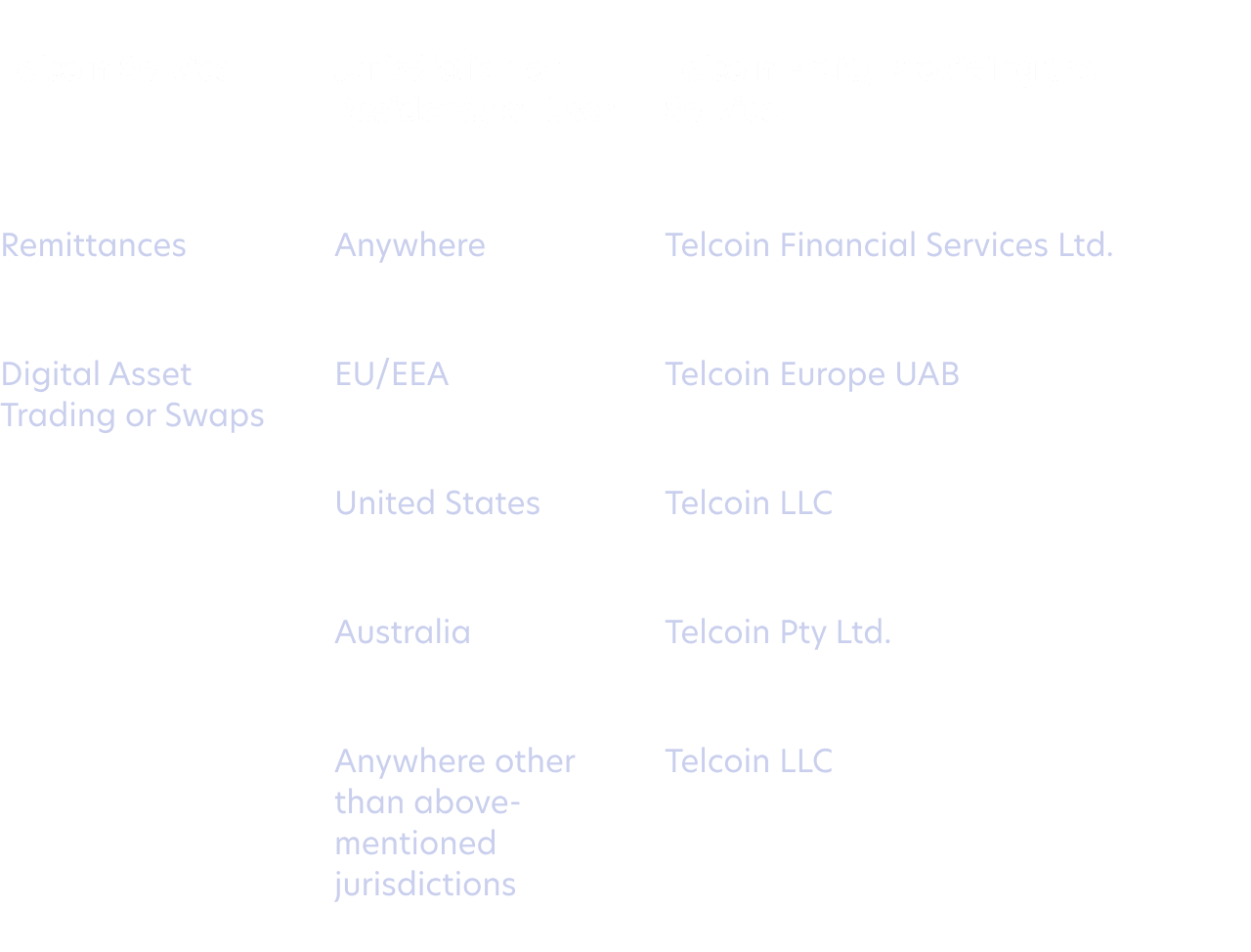 Telcoin offers its eXYZ in other global jurisdictions which do not